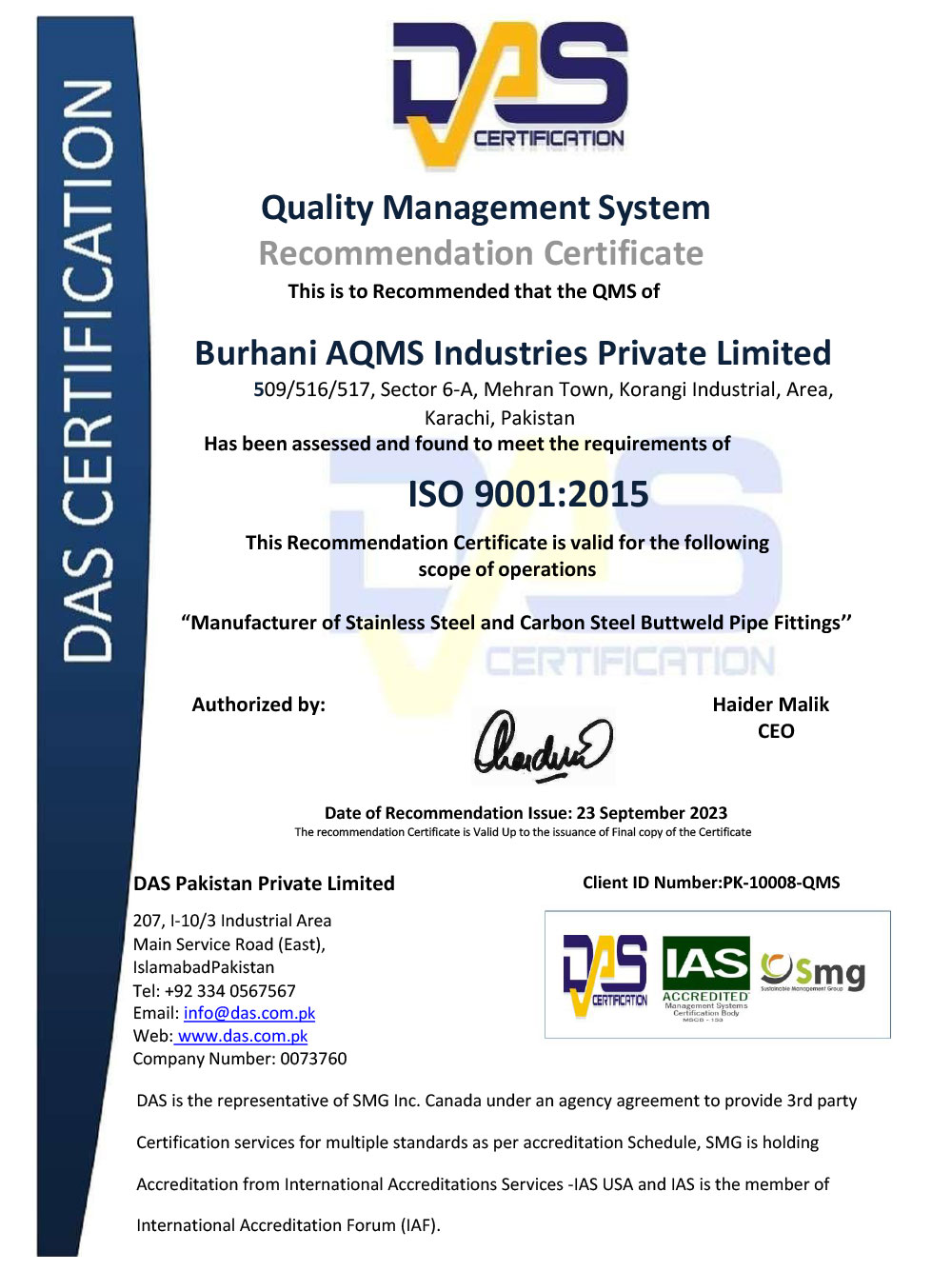 Yes, we have ISO 9001:2015 Certification and green field certification.