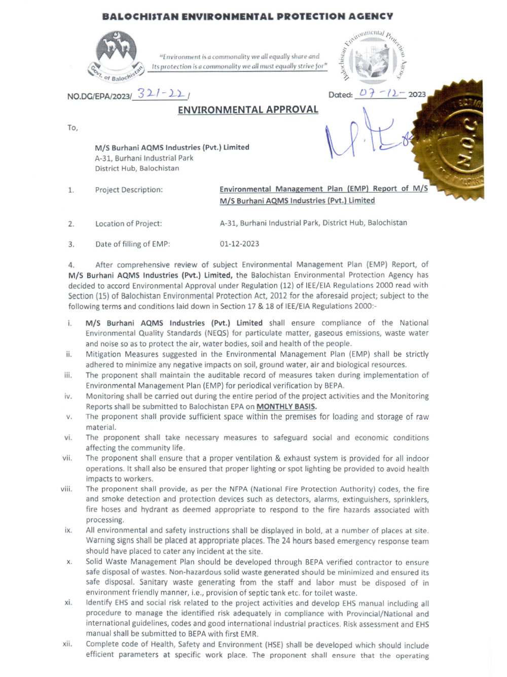 We have installed solar panels to generate 300 KW power of green energy to run our manufacturing plant. This activity reduces our carbon footprint and minimizes our environmental impact.